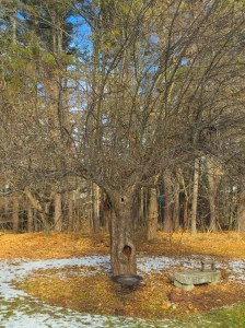The maple sap is running. The skies are blue. There is a warm breeze. The snow is… mostly evaporating, actually. Or sublimating is probably the more correct term. There are rodents chasing each other through the pines, and the birds are loud even at midday. Crows seem to have much to say today; the wren is full of vitriol as usual; the resident male cardinal is preening in the forsythia. Ah spring, when an old woman’s fancy turns to… pruning.