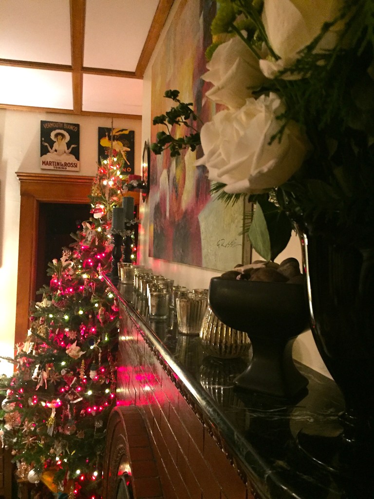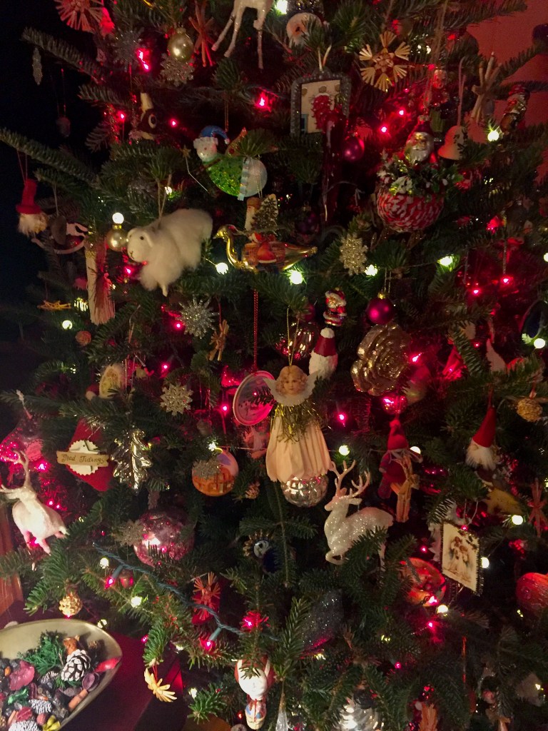 I didn’t write poetry this week. I made pretty. Which is my one superpower. So here is an image poem on Midwinter. It helps to have music. Here is what I was playing while slathering festivity on a hapless fir tree.