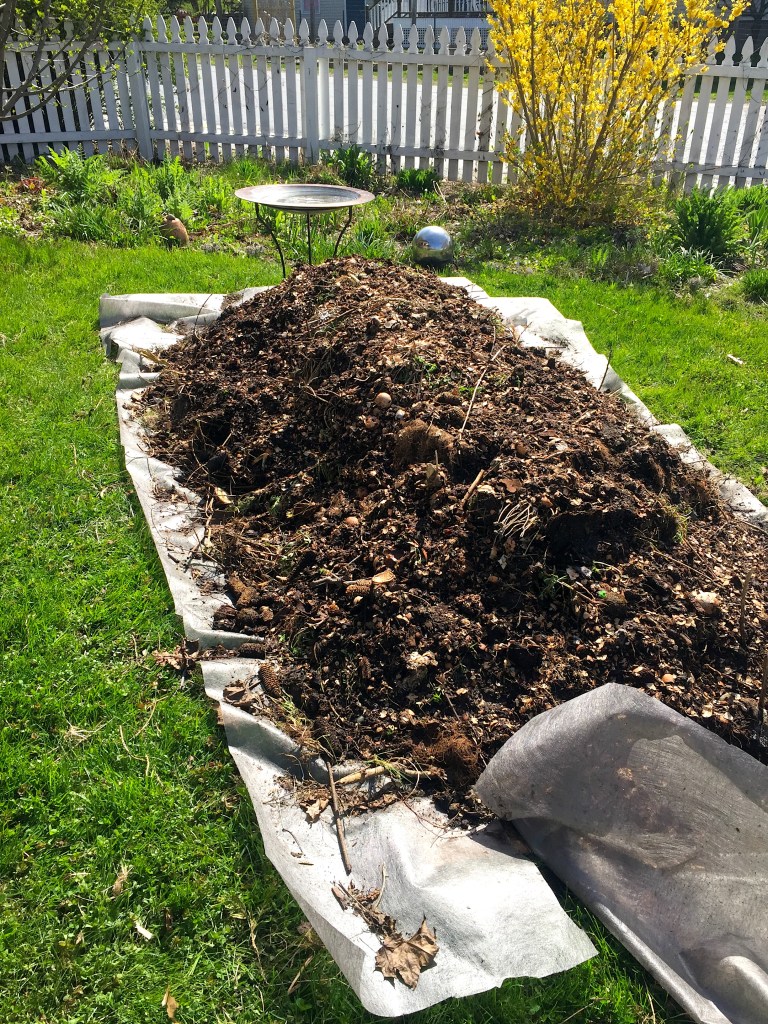 My other project for the weekend was to move the compost bins out from under my front porch seating area. This was one of those jobs in which you discover that there are multiple steps leading up to it. A pile of brush and yard waste needed to be moved to make room for the bins in the most logical part of the yard — close to the kitchen door but not close to any windows. Then the bins needed to be emptied. Added together, this meant I’d have a nice big pile of stuff that I could use to make a mound in the front yard for my eggplants, sweet peppers, chiles and fresh pod beans — those things that need extra water sometimes and lots of attention in harvest season. The bottom of the composting bin that was here when I moved in was the only part of this mess that was rotted down, and it has an inordinate amount of eggshell in it (again, leftovers from the former folks). So this is going to need a covering of topsoil and mulch. But it’s built and will have some time to compact before the nightshades need to go out at the end of the month. More importantly, the smell is already lessened; and when I put cedar mulch on the pile, it might even smell good. I can sit on the porch without nausea, in any case.