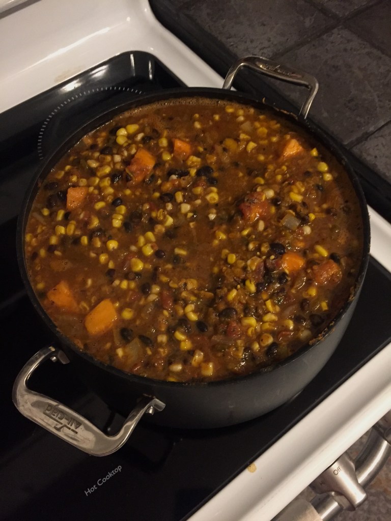 That was my thought anyway… and I invented Blue Corn Banana Bread. And yes, it is extra-super-special! So yummy it didn’t even go to the freezer. I’m eating a large slice every day for dinner with this week’s Pot of Something (black beans, sweet potatoes, corn, and green chile in a tomato-butternut squash soup base… yes, it’s delicious… no, it has no name.)