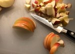 Chop up the apples and set them to sousing — put them in a bowl with 5-6 tbs bourbon and 1 tsp cinnamon. Use Jack Daniel’s Tennessee Honey or a similar bourbon with a sweet edge. Keep spooning the bourbon/cinnamon mix over the apples while you’re prepping the rest.