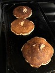 Use a 1/3 cup measure to pour the batter onto a medium-hot griddle. A griddle can accommodate about 3 of these pancakes at a time. When the surface bubbles pop but don’t collapse, flip the pancakes. They are done when the sides look solid with air pockets. When done, move to the warming platter and repeat until you run out of batter.