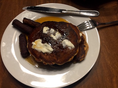And now to the recipe. This comes from flap-jack master, Sean Anker, who has flipped uncountable pancakes, serving out delectable mountains of them whenever the mood strikes. This variation is special for Mardi Gras. It incorporates bourbon — but no beads.