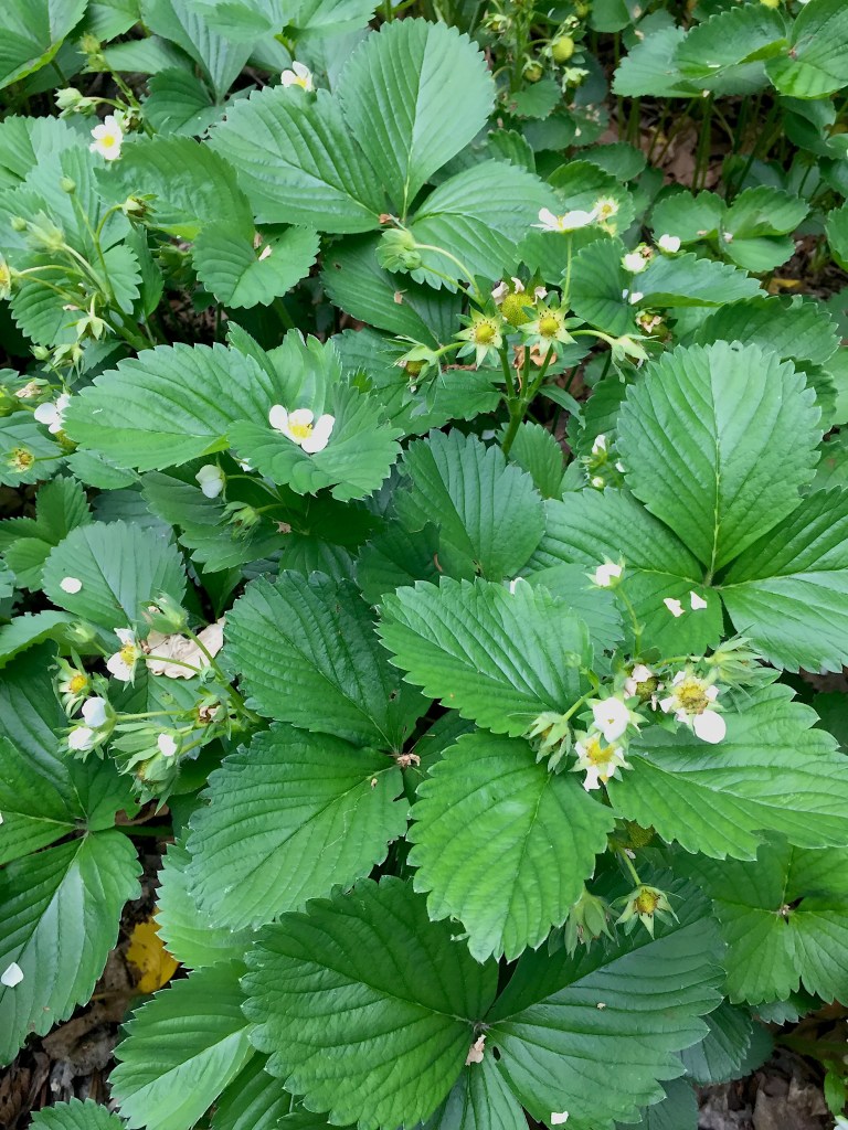 My fava beans have flowered. Their blooms are beautiful enough for the vase if I didn’t really want the beans for the table. But those aren’t ready yet either, obviously. However, I keep pushing the estimated garlic harvest up. Some of the leaves are browning already. I might be pulling it up by early July. And the potatoes seem to be on a rampage. I had no evidence of potato last week. This week I’m thinking they will need hilling up before the Flower Moon goes dark. I’m going to try stuffing straw around them this year, rather than piling on more and more compost — though I also got a good deal on two yards of compost and have plenty to spare now.