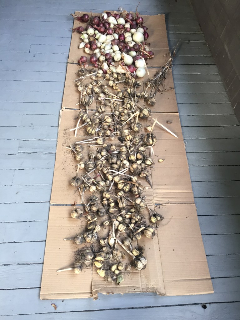 This is good because the tomatoes are producing at last, and I’d like to get a few weeks of fresh garden tomatoes before winter sets in and there is only chutney and sauce. Perhaps I’ll even get a few in the dehydrator for sweet dried tomatoes. There are also potatoes to cure before the cold sets in, and before that can happen I need to put the garlic and onions in the basement. For obvious reasons, that project was put on hold. Just because the mold down there had stuck to infecting woody materials doesn’t mean I trusted my harvest down there with fungus running rampant. I also haven’t managed to sow my fall peas yet because the groundhog is still very much active and hungry. But maybe she will stick to day length timing and bed down for winter in spite of the warm weather and late abundance of green leaves. So perhaps I can plant peas this week with the arrival of the autumnal equinox.