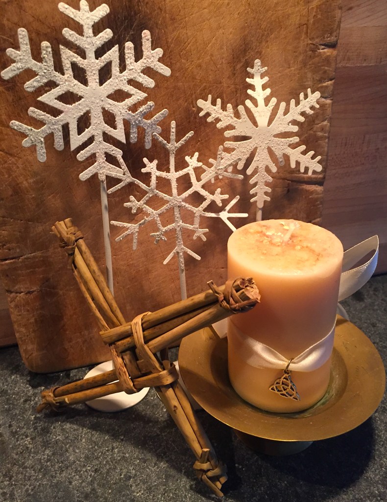Corn dollies are made at the preceding harvest to represent the Cailleach. These dollies are kept over the winter, usually in the kitchen or granary, and brought out at Imbolg when Brigid transforms herself into a young woman once again. The harvest dolly is placed in a symbolic bed on the hearth and dressed in white lace, shells, stones and whatever flowers are available. If the hearth ashes are disturbed in the morning, this indicates that Brigid had visited her bed overnight, leaving her blessing on the home for the coming year. After Imbolg, the grain dolly is often crushed and mixed in with the spring’s seed corn as a charm for fertility and continuity.