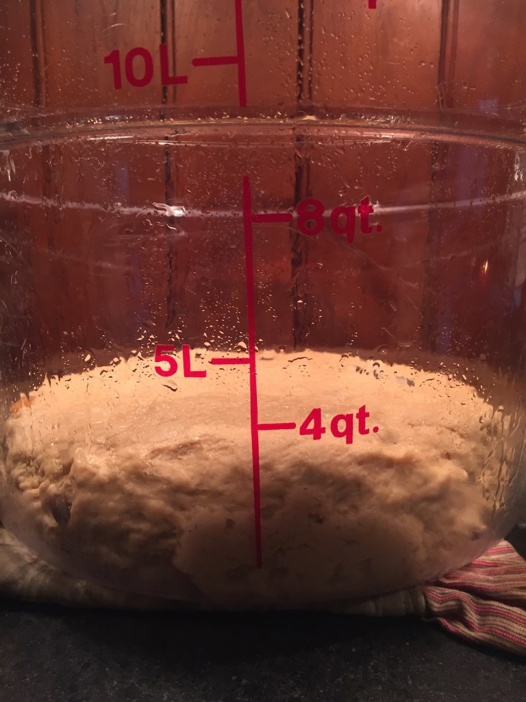 Cover the bowl, set in a warm place, and let the dough rise until doubled (or more). Probably 2 hours.