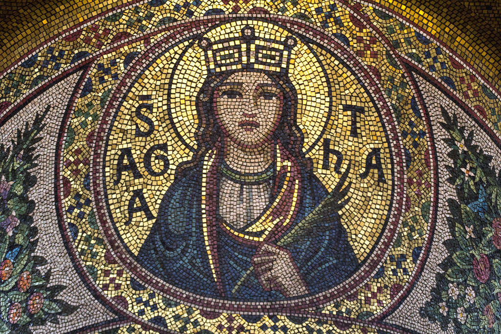 St Agatha is the patron saint of many places, but she is most revered as the intercessor for women in all their special adversities. She is patron of breast cancer and midwives. She watches over nurses and wet nurses. She comforts and protects those who live with sexual assault. And she also has a strong association with fire and volcanic activity, especially when it threatens the home.