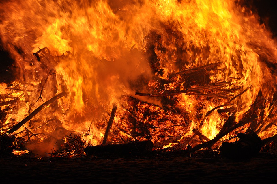 Hearth fires were rekindled by carrying a brand from the bonfire to the house. A peculiar superstition grew up around this. If a woman came to the house asking for fire, she was believed to be a witch, coming to steal all the butter from the house. The householder should absolutely not share out the fire, except if she had the foresight to deck the doorway with May greenery which prevented all witchcraft from crossing the threshold — and had the double benefit of blessing the dairy. On the other hand, bringing the greenery through the door, especially if it contained hawthorn in flower, was a sure way to introduce faerie mayhem into the household.