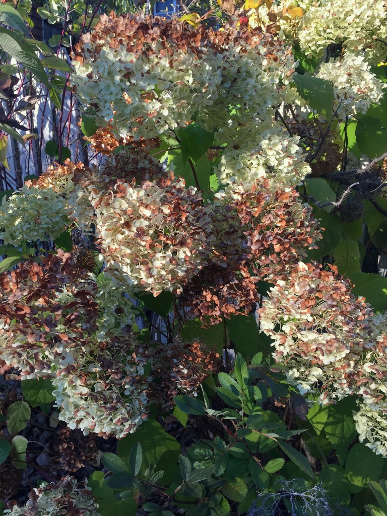We, here in central Vermont, have dipped slightly below freezing for maybe an hour or so before dawn a couple times, but it’s not been enough to freeze plants, nor enough to leave frost — except a bit on the north-facing windows in this house. Which is how I know it did, in fact, dip below freezing. Wouldn’t know it from most of the trees. Those that were most drought stressed turned colors, mostly brown, and dropped nearly all their leaves in the rain we had. However, the few trees that are not leafless are, by contrast, nearly all green. Also disorienting for a Vermonter in October.