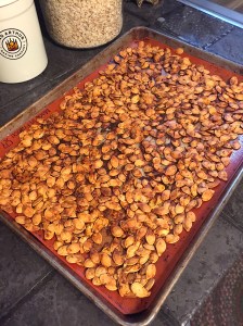I have three more pie pumpkins (got them 5 for $30…). And the two large carving pumpkins. I should have enough seeds to be snacking all winter.