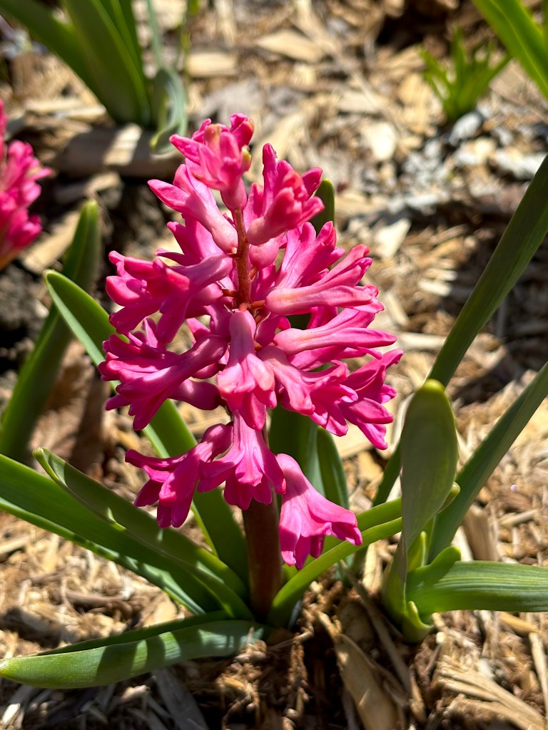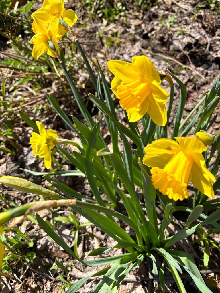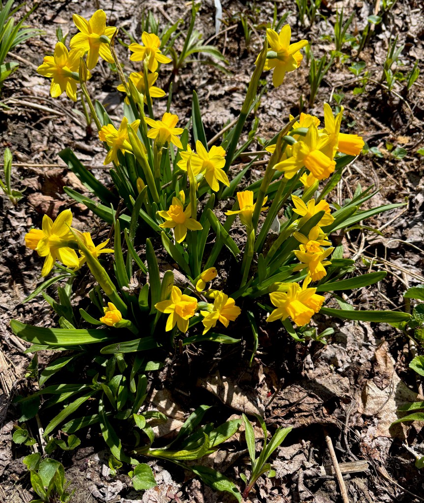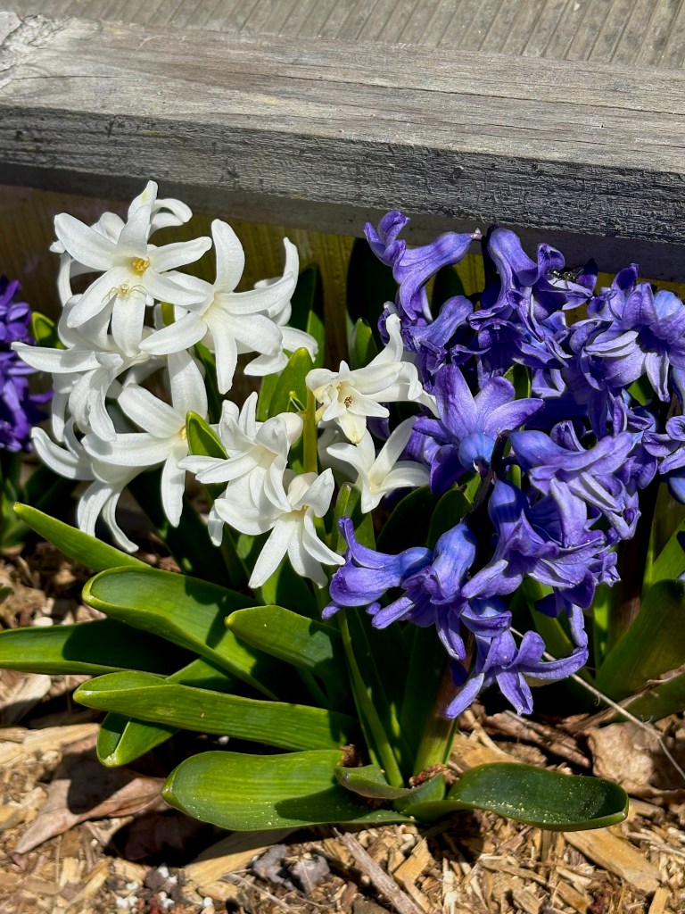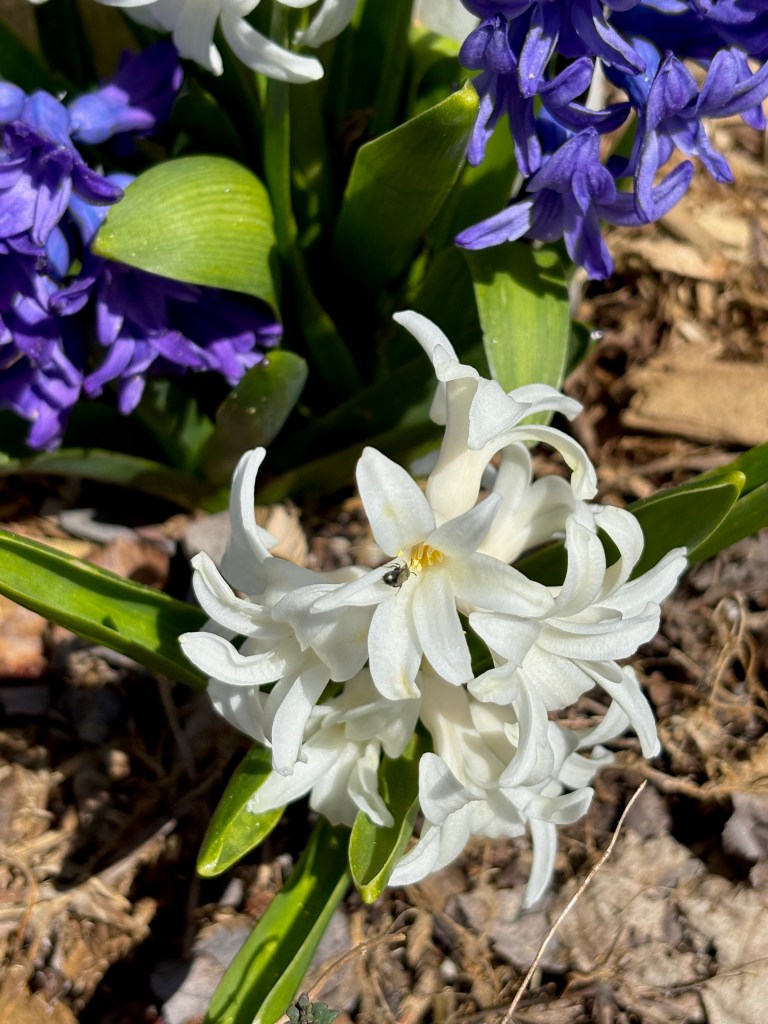 And there is more cheer in the garden… After the snowstorm and hard freeze last week, the daffodils and hyacinths apparently decided they needed to make up for lost time. Sweet-scented flowers are everywhere — along with a profusion of wasps and bees and little bugs that refuse to be still long enough for me to identify. How do they know the flowers in my garden are blooming? No idea! But it makes me ever so happy.