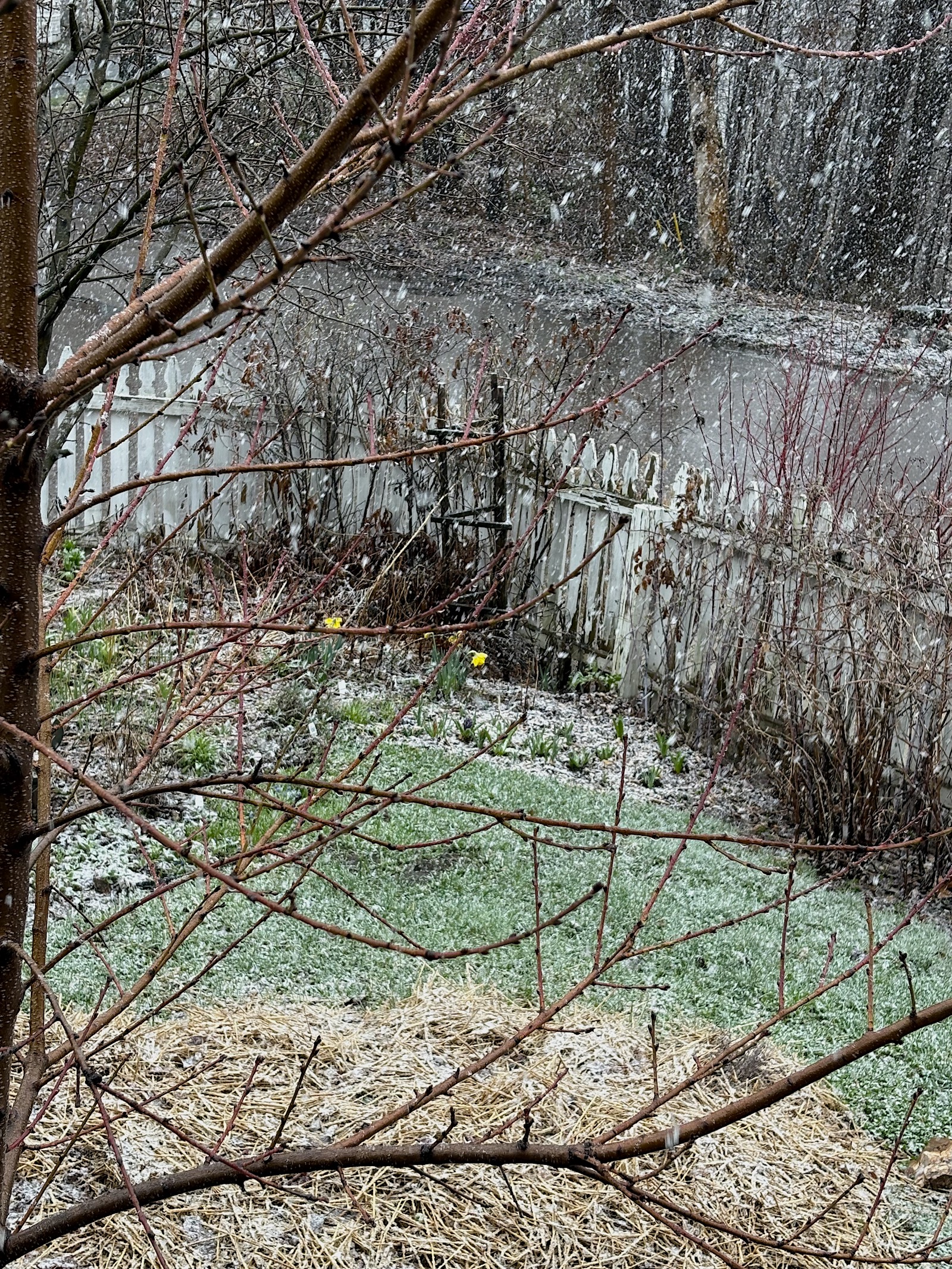 Central Vermont has been experiencing spring weather whiplash. This is what my garden looked like last Sunday (the 21st).